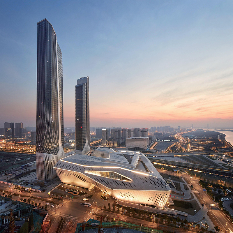 Hangzhou Century Centre (Gate of Hangzhou) is located at the core of the Qianjiang Century City Olympic Sports Centre in Hangzhou, and is the focus of the Big Dipper complex. The total planning area of the project is about 77,572 square meters, with a total construction area of about 530,000 square meters. The twin tower super high-rise area is composed of two 310 meters high tower.
